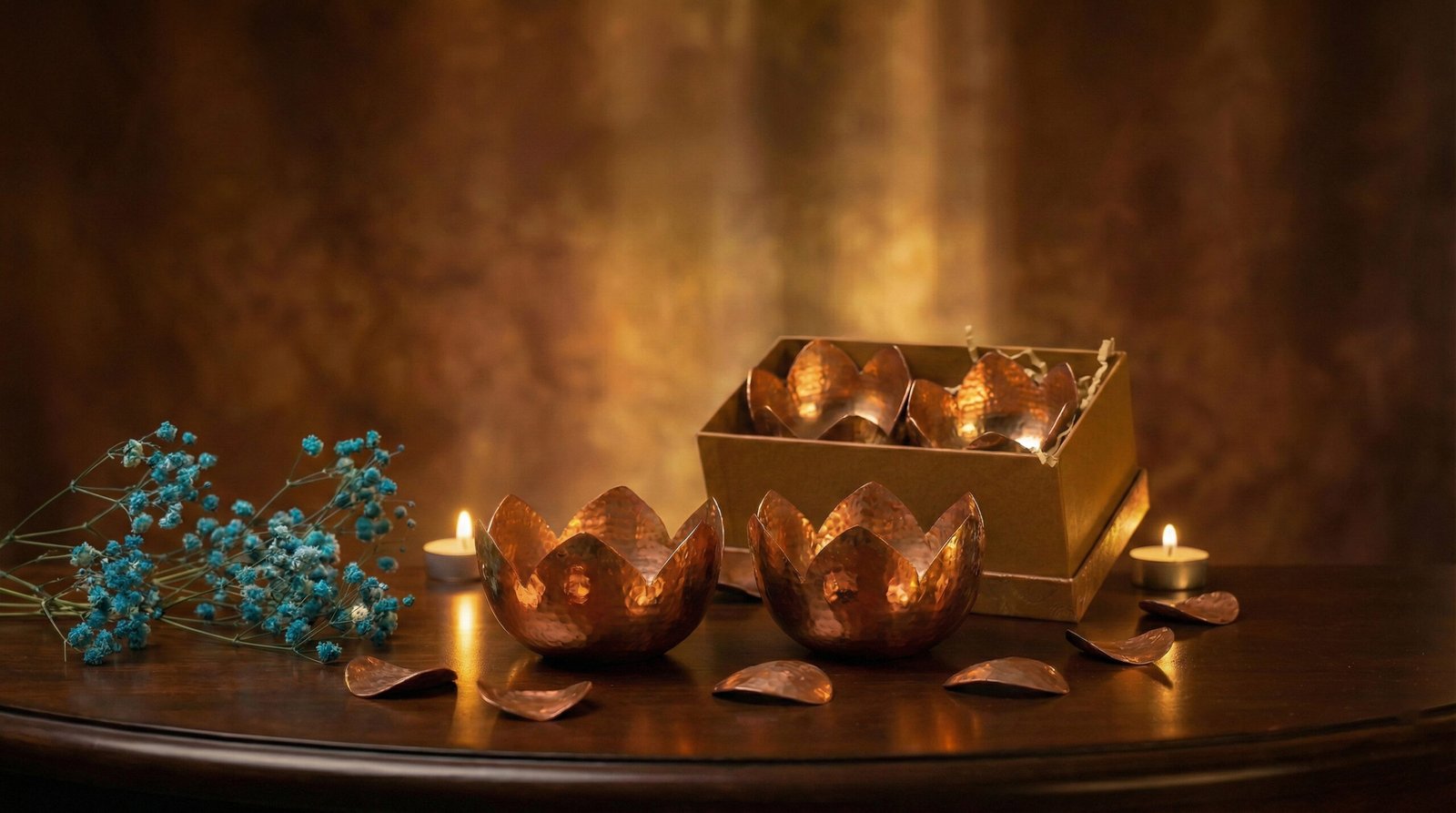 Blending traditional symbolism with refined craftsmanship, the copper lotus candle holder creates a calming ambience while enhancing your home with a touch of cultural richness and timeless beauty.